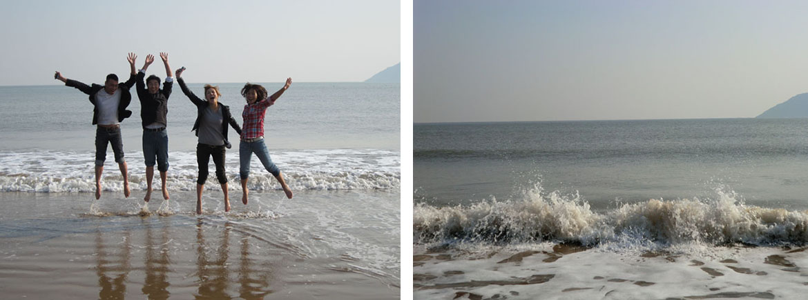 欣賞完美輪美奐的沙雕,草莓视频网站來到了海邊。沙雕城對(duì)麵就是一片蔚藍的汪洋大海。十一(yī)月的海邊雖(suī)然有點冰涼,但也不能(néng)阻止草莓视频网站看到寬闊大海激動的心情。草莓视频网站迎著海風奔跑,放飛翅膀,放飛夢想,感受海天交接的壯觀。今天的行程可以用一句話來描述:魅力舟山,快樂朱家尖島;舟山(shān)朱家尖島,歡樂沙雕城。