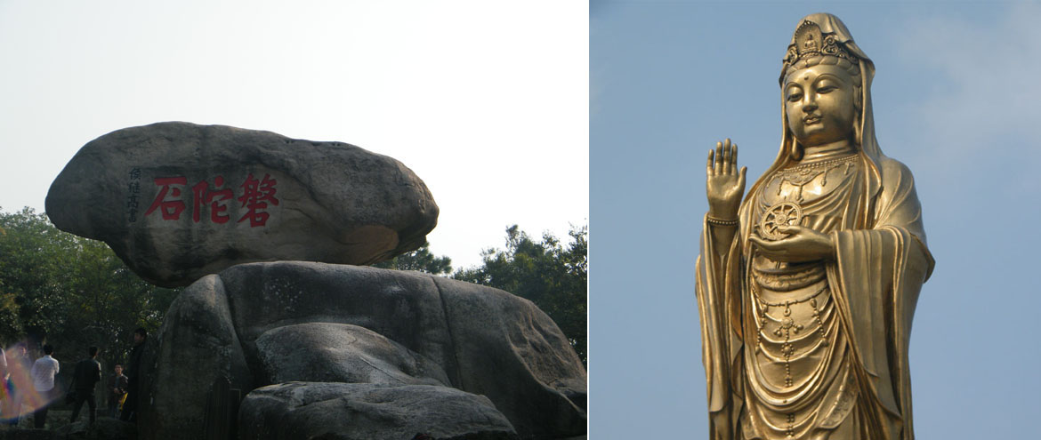 島四周金沙綿亙、白浪環繞,漁帆競發,青峰翠巒、銀濤金沙環繞著大(dà)批古刹精舍,構成了一幅幅絢麗多姿的畫卷,給人(rén)完美的視覺(jiào)體驗。岩壑奇秀,磐陀石、二龜聽法(fǎ)石、心字石、梵(fàn)音洞、潮音洞、朝陽洞各呈奇姿,引人入(rù)勝。