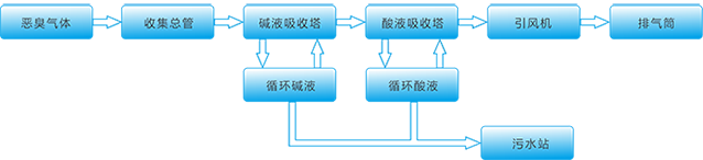 本技術針對的是汙水(shuǐ)處理(lǐ)站的惡臭氣(qì)體,汙水處理站的惡臭氣體主要來源於進水格柵、嚗氣沉沙池、初沉池、汙(wū)泥脫水間、汙泥沉澱池等;主要成分有(yǒu)氨氣、硫化氫和甲硫(liú)醇等無機物(wù)。根(gēn)據汙水處理(lǐ)站惡臭氣體的成分和特性,采用化學吸收法,使用螺旋噴霧填(tián)料裝置治理此類惡(è)臭氣體,其治理效率極高(gāo)。